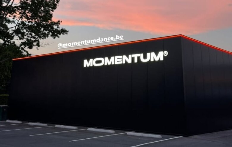 Voor Dansschool Momentum in Waregem, opgericht door Laurens Dursin en Julie Vermeire, mochten wij de volledige gevel en signalisatie vernieuwen. Het resultaat is een moderne, opvallende en dynamische look die perfect aansluit bij de energie van de Dance Academy.