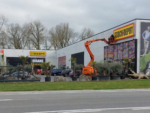 Met deze realisatie zorgen we ervoor dat het merk Stock Depot onmiddellijk herkenbaar is en geen enkele voorbijganger ernaast kan kijken.